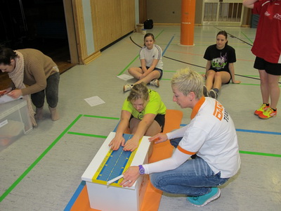 Schülerinnen aus der Kl. 9a und eine Mitarbeiterin des DAK Teams beim Zirkeltraining