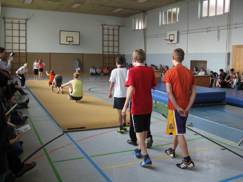 Am letzten Mittwoch fand ein Informationsnachmittag für die Schüler der jetzigen 4. Grundschulklassen statt. Zahlreiche Eltern und Schüler fanden sich bei uns ein, um sich über die Unterrichtsangebote, den Nachmittagsunterricht und die Räumlichkeiten der Realschule zu informieren. Während sich die Eltern vom Rektor Herrn Klaus Maletzki die Angebote der Realschule darstellen ließen, wurden die Schülerinnen und Schüler in Gruppen in den "neuen" Fächern Hauswirtschaft, Technik, Chemie und Kunst "unterrichtet". Zum Abschluss wurden in der Turnhalle sportliche Darbietungen gezeigt. Umrahmt wurde die ganze Veranstaltung durch ein musikalisches Programm der Schulband und des Chores.