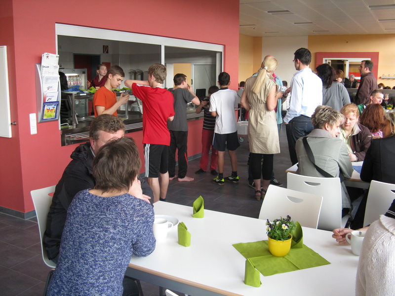Erstmalig in der nagelneuen Mensa konnten sich die Eltern mit Kaffee und Kuchen stärken und in Gesprächen mit Lehrerinnen und Lehrern die eine oder andere Frage klären.