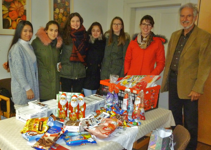 Alle Klassen und auch Lehrer und Schulleitung beteiligten sich an dieser Schokoladen-Sammelaktion, sodass zwei große Körbe voll Schokolade zusammen kamen.