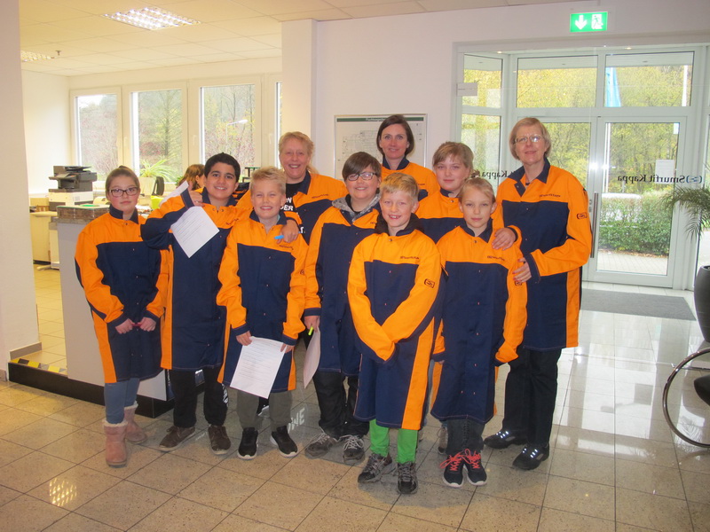 Am Mittwoch, den 8.11.2017 sind wir, Melissa, Max, Gian-Lucca, Walid, Max R., Lene und Lena E., gemeinsam mit Frau Reinhardt, Frau Senkbeil und Frau Becker zu einer der größten Wellpappe-Firmen in Deutschland nach Herzberg zu Smurfit Kappa gefahren. Als wir fast am Ziel unserer langen Reise waren, haben wir uns gefragt, wie so eine Firma aussehen wird. Endlich war es soweit, wir hatten unser Ziel erreicht! Von außen sah die Firma ein bisschen düster aus, weil überall diese komischen Papier ,,Türme‘‘ zu sehen waren, aber von innen sah die Firma einfach toll aus. Man hat uns begrüßt und Anzüge gegeben, die wir anziehen sollten. Schmuck und Handys mussten wir ablegen.