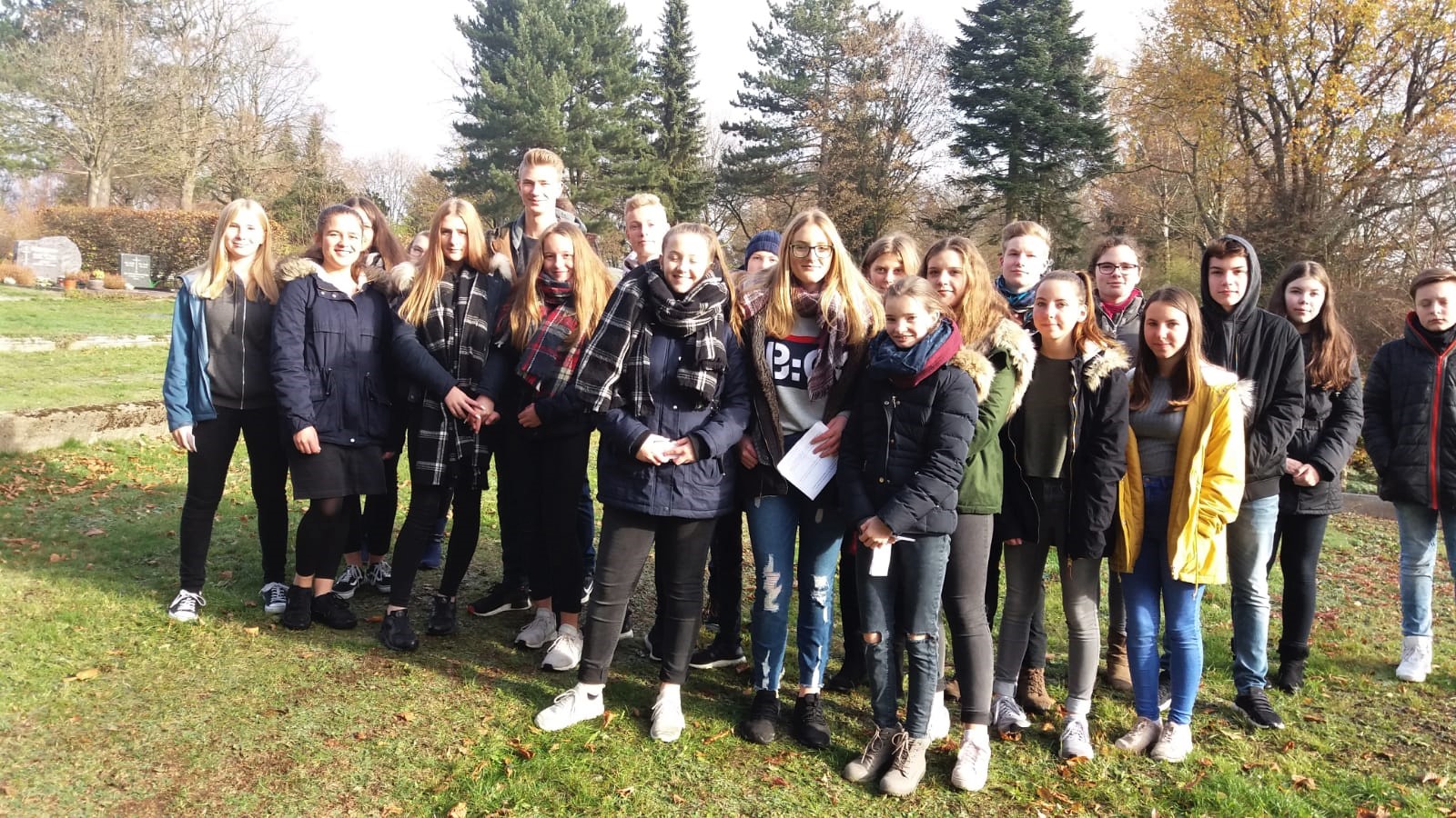 Uns ist es vergönnt, seit vielen Jahren in Frieden und Wohlstand zu leben, deshalb ist es umso wichtiger, den Toten der Kriege zu gedenken. Zu diesem Anlass nahmen Schülerinnen und Schüler des 9. Jahrgangs an der Gedenkfeier zum Volkstrauertag teil. Im Vorfeld hatten sie sich mit der Thematik auseinandergesetzt und ihre Gedanken zum „Krieg“ formuliert. Mit ihren einfühlsamen Beiträgen zeigten sie, dass sich auch die jüngere Generation der Zerbrechlichkeit des Friedens bewusst ist und sich aktiv an der Erinnerungskultur beteiligt.