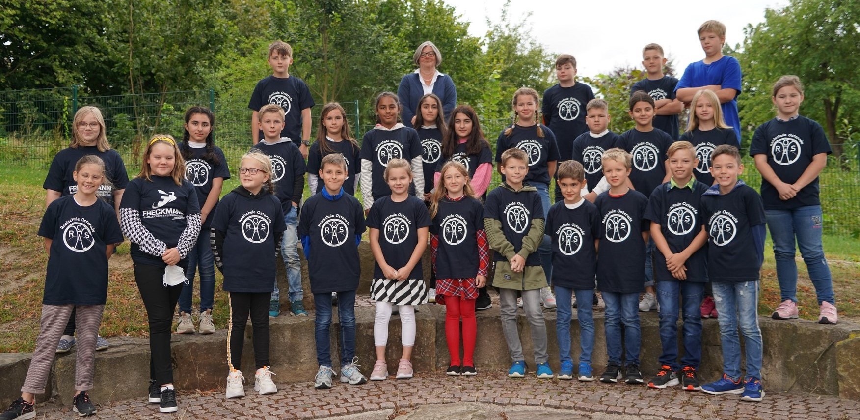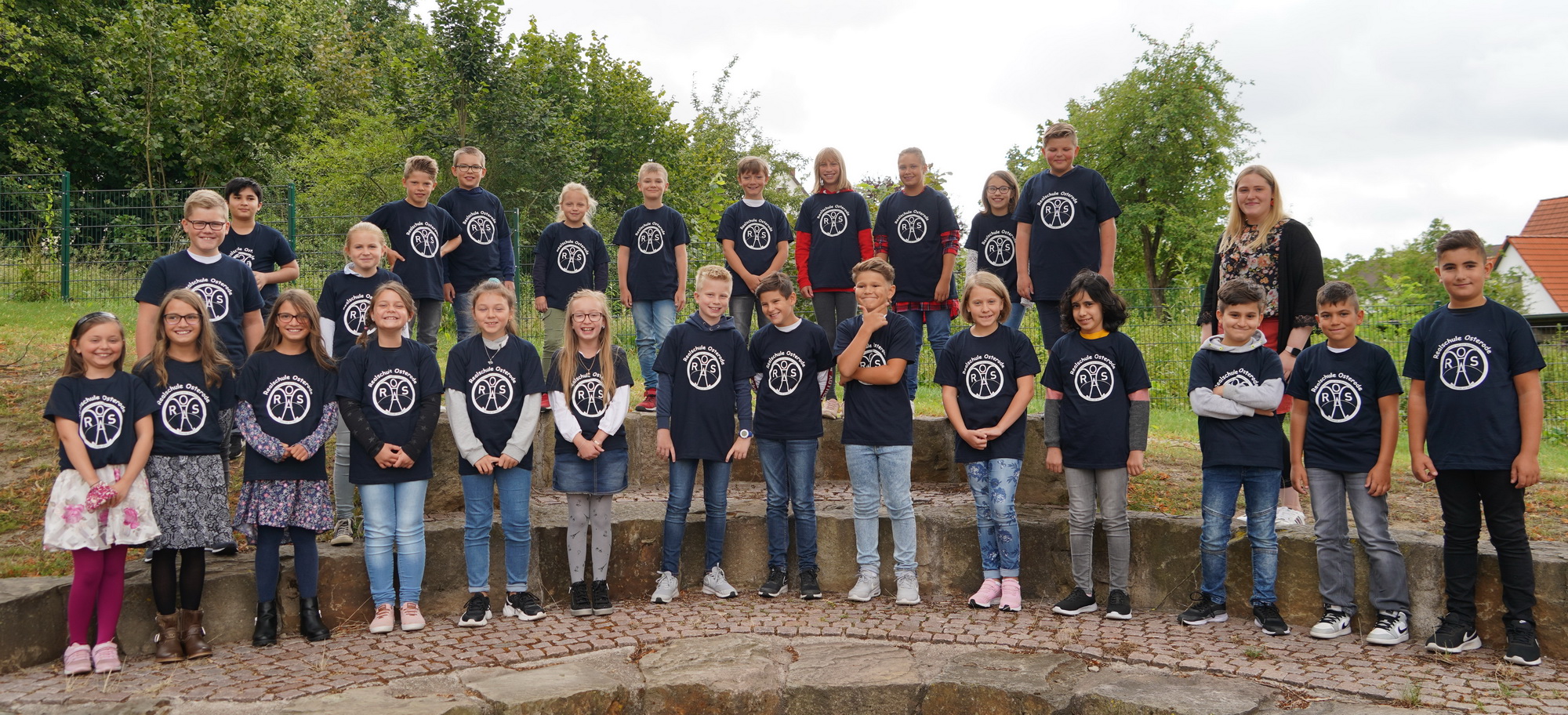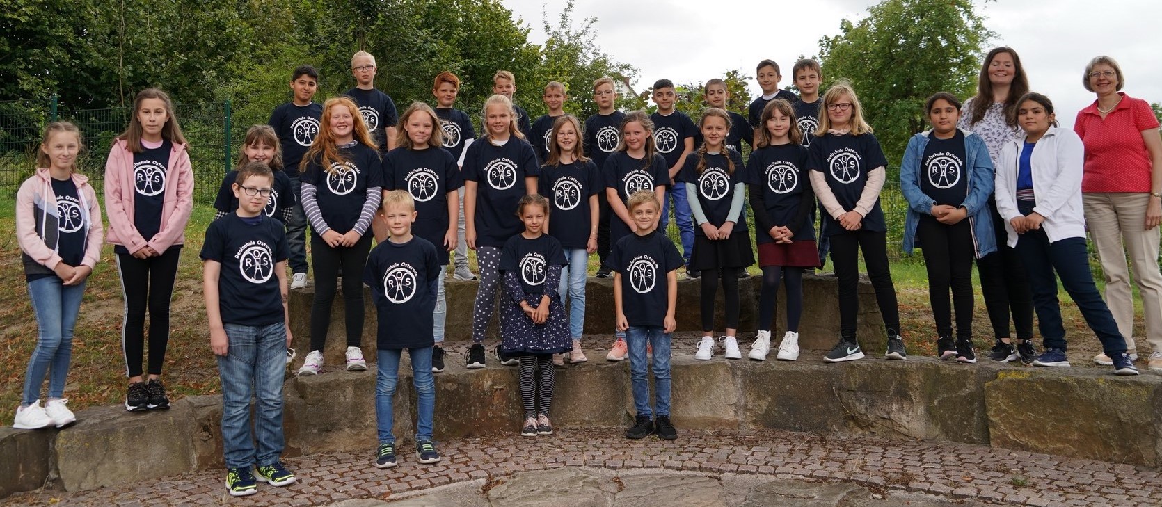 Im Rahmen einer kleinen Feierstunde wurden die Schülerinnen und Schüler der neuen 5. Klassen begrüßt und herzlich willkommen geheißen. In drei Durchgängen wurden die Schüler*innen in die einzelnen Klassen aufgeteilt. Mit neuen T-Shirts ging es zum ersten gemeinsamen Klassenfoto.