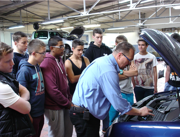 Im Juli fanden weitere Berufsorientierungsaktivitäten statt. Die Aktion „Pimp my Car“ der Kfz-Innung Osterode hat an unserer Schule sehr guten Zuspruch gefunden. Frau Fricke hatte den interessierten Schülern des Vorabschlussjahrgangs nach der guten Resonanz angeboten, in unterschiedliche Werkstätten Einblick zu nehmen. So haben sich am 04.07.2014 neun Schüler der neunten Klasse gemeinsam mit Herrn Otto und der Obermeisterin Frau Fricke auf den Weg gemacht zum Autohaus und Schulbetrieb Wentorf & Schenkhut sowie zu den Unternehmen Lüer Transporte und Dörge. Die Schüler erhielten interessante Einblicke in den Beruf des Kfz-Mechatronikers. Sie zeigten sich sehr interessiert und beeindruckt von den Anforderungen, die dieser Beruf heute stellt.