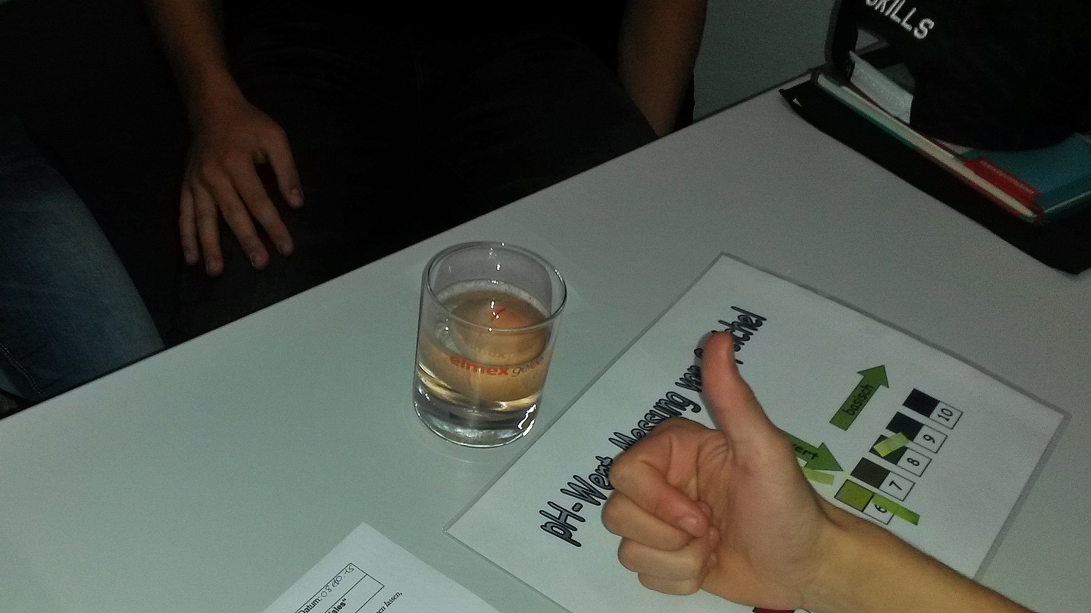 Kurz vor den Herbstferien wurde im Profilfach „Gesundheit und Soziales“ der zehnten Klassen an der Realschule auf dem Röddenberg Frau Monika Böller vom Gesundheitsamt in Osterode eingeladen. In einer interessanten und sehr anschaulichen Doppelstunde zum Thema „Zahngesundheit und Getränke“ stellte sie den Zehntklässlern zunächst die Getränkeampel vor. Dabei wurden Tee und Wasser als „grün“ (gut für den Körper) eingestuft, Milch und Saftschorlen „gelb“ und Cola, ACE-Saft und Energie-Drinks „rot“, auf Grund des hohen Zuckergehaltes und der schädlichen Zusatzstoffe. Anschließend wurde Zuckerwasser zum Probieren verteilt, wobei der Zuckergehalt des Wassers bei jedem Durchgang erhöht wurde. Frau Böller erklärte den SchülerInnen, dass viele Getränke, so viel Zucker enthalten, dass der Mensch diese normalerweise gar nicht mehr trinken möchte, die Süße jedoch durch Zugabe von Zitronensäure überdeckt wird, sodass uns diese Getränke trotzdem schmecken. Außerdem ging sie auf die Ernährungspyramide ein und betonte nochmals, wie wichtig die ausreichende Flüssigkeitsaufnahme für den Menschen ist. In verschiedenen Experimenten lernten die Schülerinnen und Schüler etwas über den ph-Wert und konnten diesen mit Hilfe von Indikatorpapier in ihrem Speichel und in den verschiedenen Getränken selbst nachmessen. Welchen Einfluss der Zucker und die Säure der „roten“ Getränke hat, erklärte sie anschaulich am Beispiel der Eierschale, die in einem Glas mit Essig sofort angegriffen und zersetzt wird. Genauso geschieht dies mit unseren Zähnen, wenn sie von Säuren angegriffen werden! Einmal wöchentlich Zähne putzen mit Elmex-Gelee bildet eine gute Schutzschicht um die Zähne, was dieses Experiment ebenfalls zeigte. Am Ende dieser Doppelstunde sollten die SchülerInnen ihr eigenes Essverhalten im Hinblick auf Zucker und Säuren innerhalb eines Tages hinterfragen. Dazu notierten sie in einer Grafik wie viele sauren bzw. basischen Nahrungsmittel und Getränke sie im Laufe eines Tages zu sich genommen hatten. Das Interesse an diesem Thema war sehr groß, was die vielen Nachfragen und das gute Vorwissen der Schüler zeigte. Besonders interessant waren „die vielen Experimente, die Anschaulichkeit und der Alltagsbezug“ meldeten die Zehntklässler Frau Böller zurück.