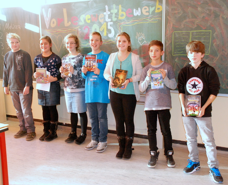 Gut vorbereitet lasen die Klassenvertreter ihre selbstgewählten Texte vor. Bei dem Wettbewerb ging es darum, einen Text allein mit der Stimme als Ausdrucksmittel zum Leben zu erwecken und den Zuhörern die Geschichte inhaltlich näher zu bringen, was allen Teilnehmerinnen gut gelungen ist. Die Leseleistung wurde nach drei Kriterien beurteilt: die Lesetechnik, wobei es vor allem auf Aussprache, Lesetempo und Betonung ankam, die Interpretationsfähigkeit und die Textauswahl. Anschließend bekamen die Teilnehmerinnen einen ihnen unbekannten Text zum Vorlesen. Alle lasen nahezu fehlerfrei, sodass es für die Jury nicht einfach war, einen Schulsieger festzulegen. Die meisten Punkte gingen letztendlich an Jennifer Len mit dem Buch „Die drei Fragezeichen Kids: Nacht im Kerker“ von Ulf Blanck. Die Siegerin wird die Realschule auf dem Röddenberg beim Regionalentscheid auf Kreisebene vertreten und erhielt eine Urkunde und – ebenso wie ihre Mitstreiter – einen Buchpreis.
