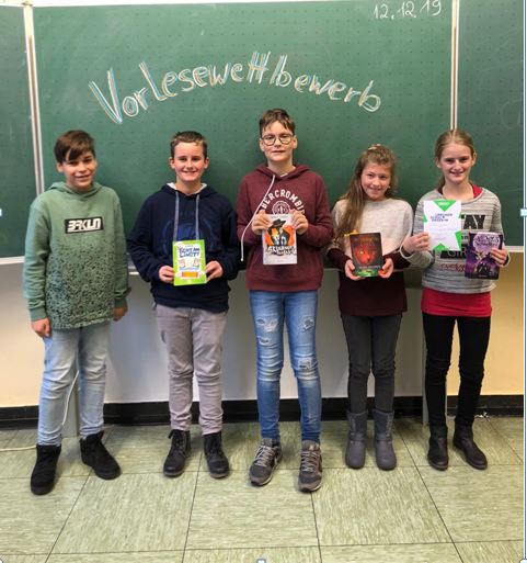 Dazu lasen sie u.a. in ihren jeweiligen Klassen ein Stück ihres Wahlbuches vor. Ihre Mitschüler und Mitschülerinnen beurteilten die Qualität der Vorlesebeiträge und kürten so ihre Klassensieger und Klassensiegerinnen Nico Bode (6a), Leonie Golletz (6b), Isabell Gunia (6c) und Max Schmidt (6d). Gelesen wurde aus den Büchern „Der Tag, an dem ich cool wurde“ von Juma Kliebenstein, „Vampirschwestern 3 – Reise nach Transsilvanien“ von Franziska Gehm, „Warrior Cats - In die Wildnis“ von Eric Hunter sowie aus „Minecraft – Die Insel“ von May Brooks. Mitte Dezember trafen sich die Klassensieger und Klassensiegerinnen des 6. Jahrgangs dann zum Schulentscheid.