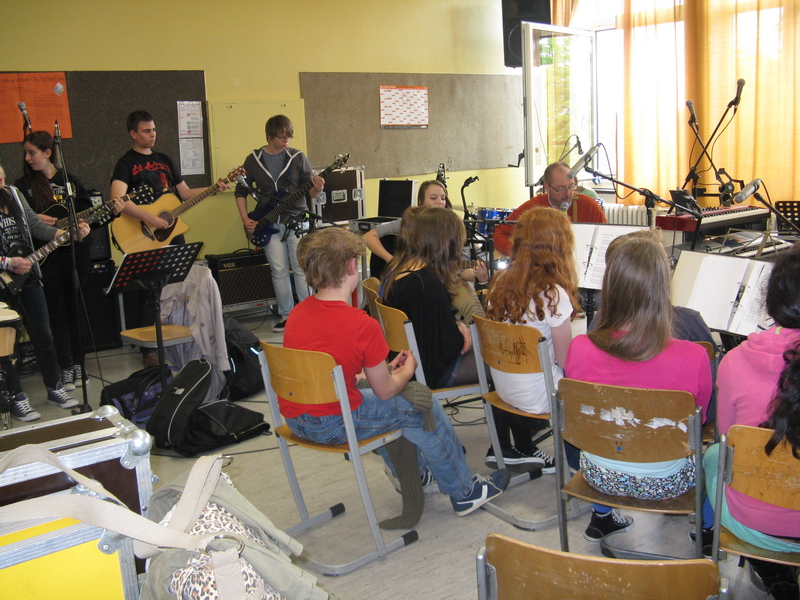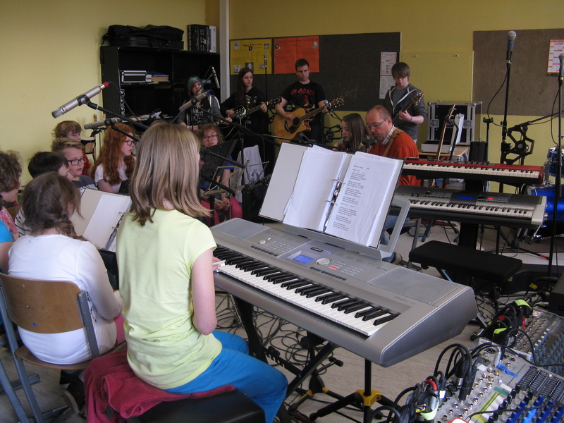 Wir suchen einerseits Schülerinnen und Schüler, die schon Instrumente spielen. Die wichtigsten Akkorde auf der Gitarre oder dem Keyboard sollten sitzen.