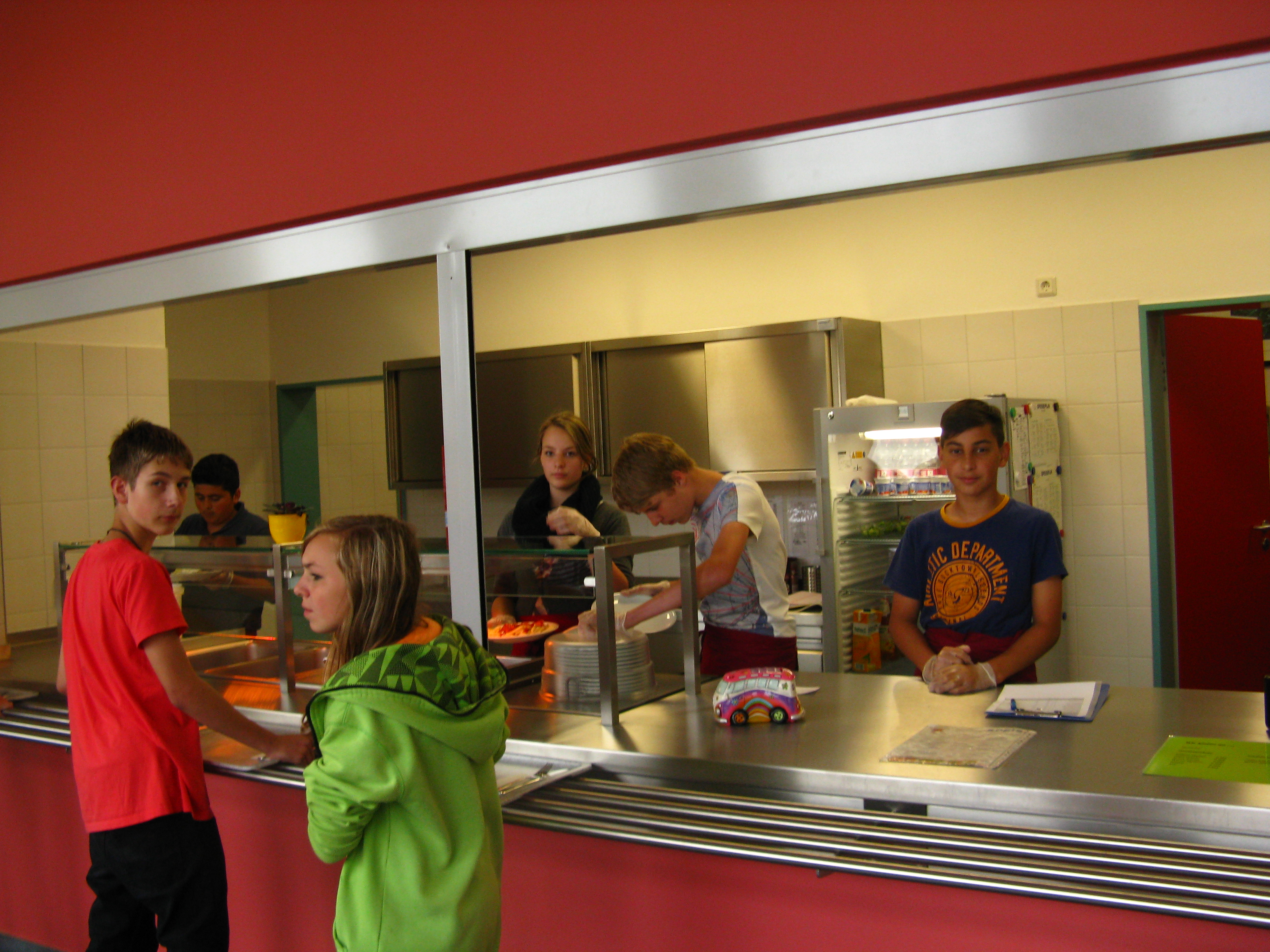Schüler und Schülerinnen „betreiben" die Mensa unter Aufsicht.