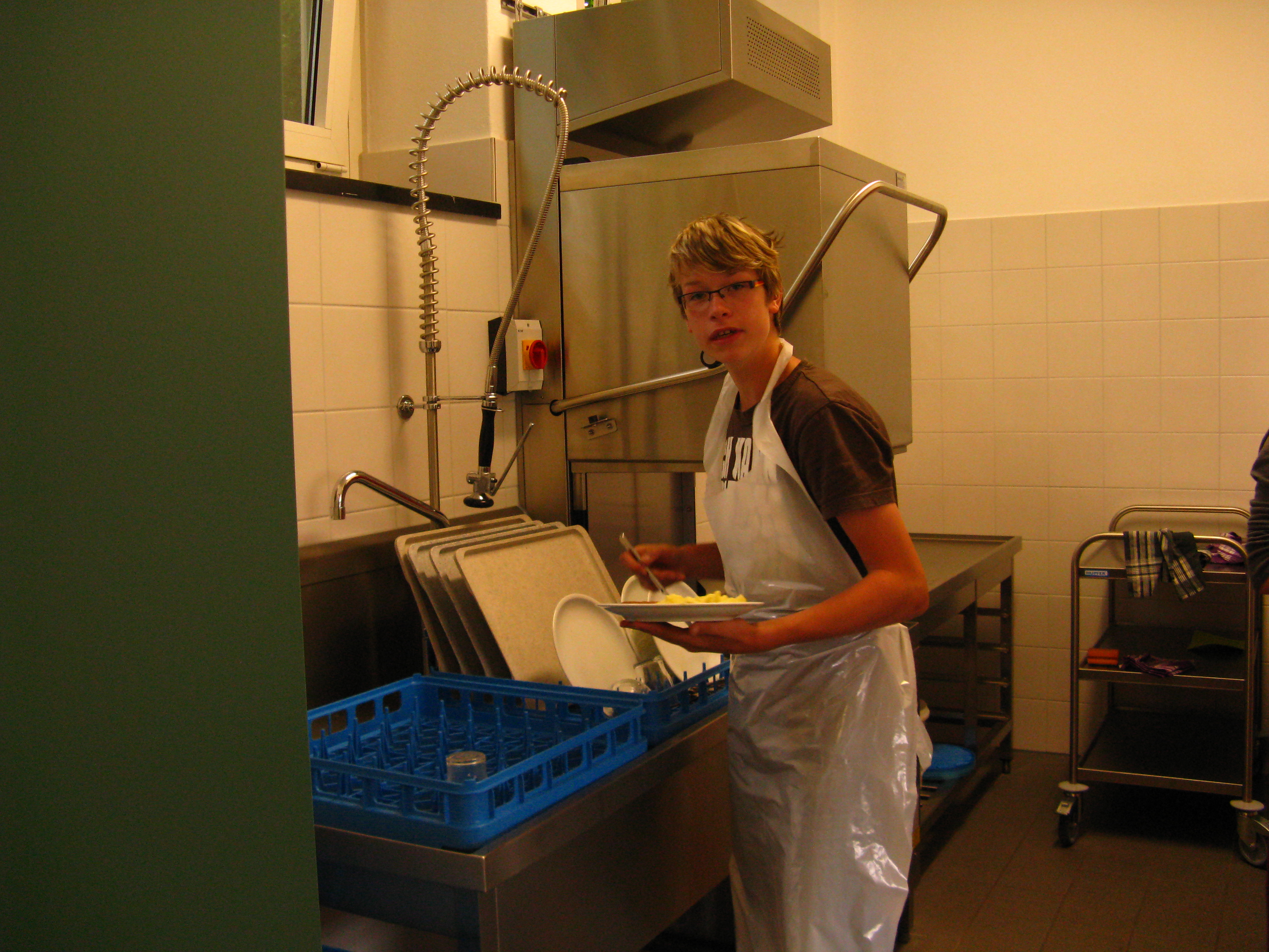 Sie treffen die Vorbereitungen zum Mensabetrieb, arbeiten in der Essenausgabe und in der Spülküche. Außerdem wird hier selbständiges, vorausschauendes und umsichtiges Arbeiten trainiert.